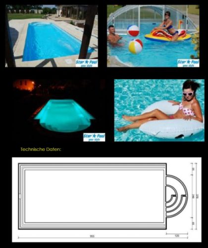 Swimming pool GFK model Helios 9,55x3,70x1,55 m