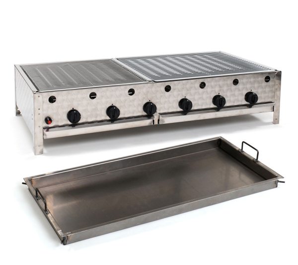 Table model, grill and steel pan, 6 adjustable burners