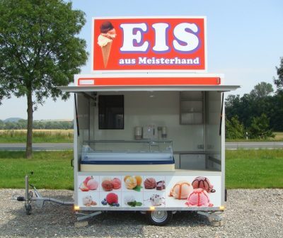 Ice cream trailer with ice counter and low frame